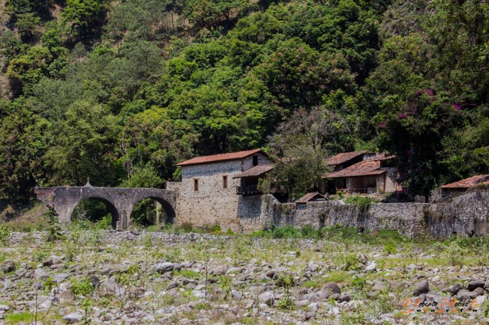 Los patios son amplios, con terrazas habilitadas en cualquier parte de la hacienda, pero lo más increíble de todo es el río: el imponente cauce que ha quedado casi vacío porque la corriente se entuba desde ahí para alimentar la presa de Necaxa. El siseo que provocan los hilos de agua que