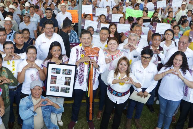 En Huehuetla, el gobernador Alejandro Armenta, acompañado de la secretaria de Agricultura y Desarrollo Rural, Ana Laura Altamirano, encabezó la entrega de apoyos al campo en la región de Zacapoaxtla, cuna cafetalera del estado. Con una inversión de más de 16 millones de pesos, se beneficiaron siete municipios mediante la entrega de más de mil 400 apoyos.