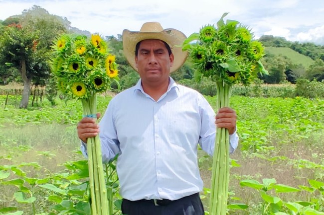 Con más de 16 años de experiencia, Arias se consolidó como el principal productor de girasoles en la región central de Chiapas