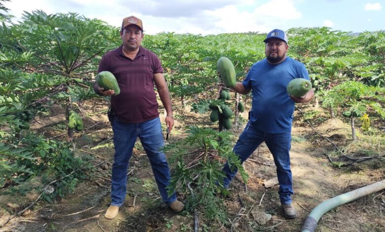 Asunción Martínez Pérez e Ismael Martínez Madrigal, primos y socios, apostaron hace más de siete años por este cultivo tras una vida vinculada a la tierra. Don Asunción recuerda que el trabajo agrícola es una herencia familiar: primero con maíz y frijol, y después con papaya, una siembra que considera más noble y con menores pérdidas frente a otros cultivos.